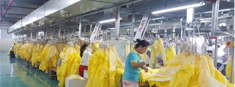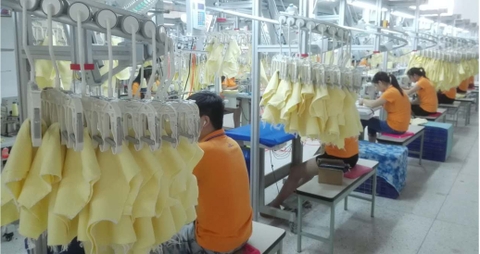 Chuyền treo: Thời gian di chuyển sản phẩm nhanh, di chuyển bằng chuyền treo, Nhân viên cơ bản không có thời gian chờ đợi.